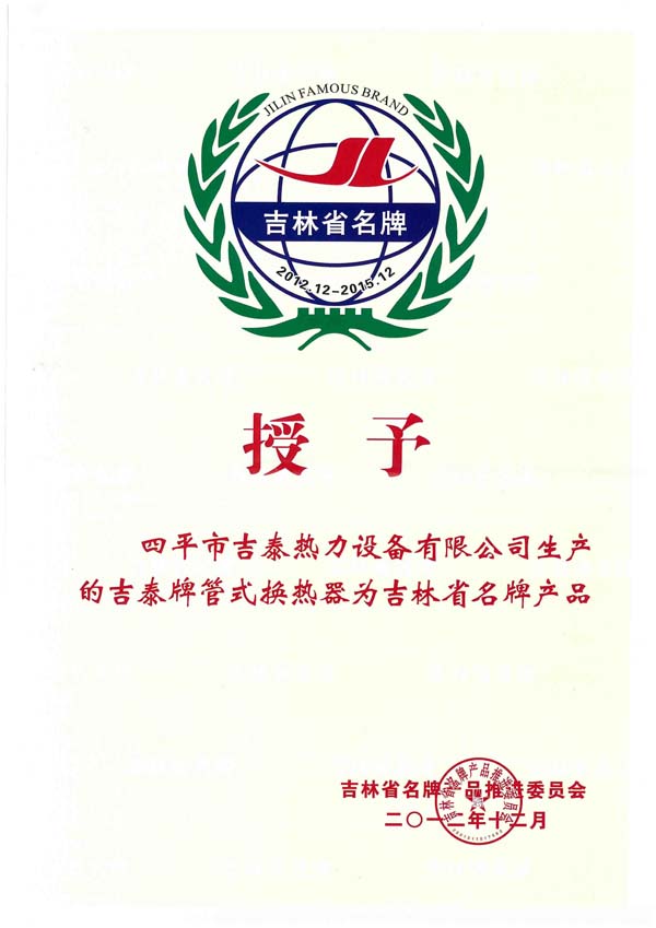 四平市吉泰熱力設備有限公司始建于1996年,坐落在全國衛(wèi)生園林城市,擁有“中國換熱器基地”美譽的四平市,公司擁有雄厚的技術力量和人才優(yōu)勢,國內生產設備,完善的檢測手段,是吉林省集設計、開發(fā)、生產經(jīng)營于一體的換熱設備生產企業(yè)。